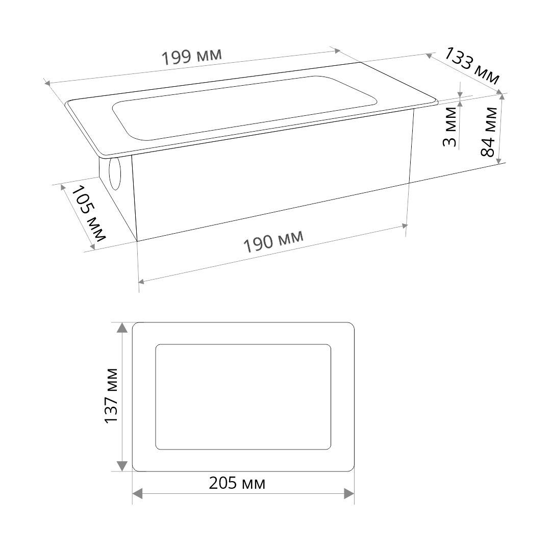 Размеры видимой части (над столешницей) (ШxГ), мм: 199×133.