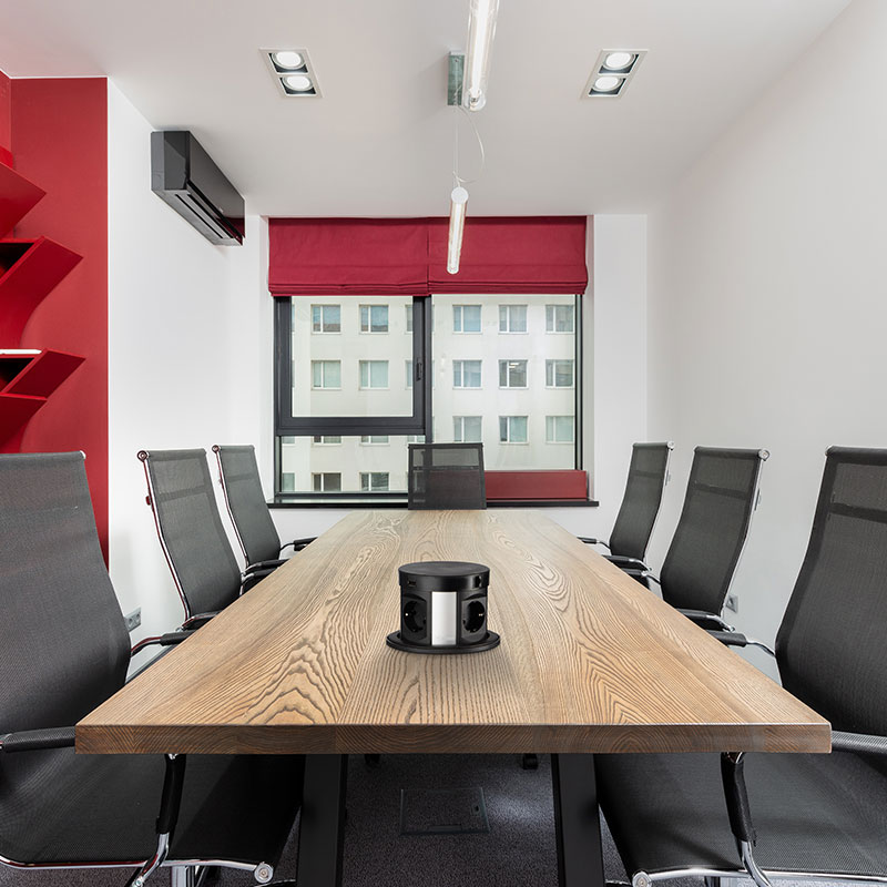 В неактивном состоянии выдвижная розетка будет скрыта от ваших глаз. Как только она вам потребуется, нажмите на крышку, блок активируется автоматически. Для деактивации следует нажать на крышку и опустить корпус до упора. Для зарядки мобильных устройств, поддерживающих стандарт беспроводной зарядки Qi, расположите устройство посередине крышки.